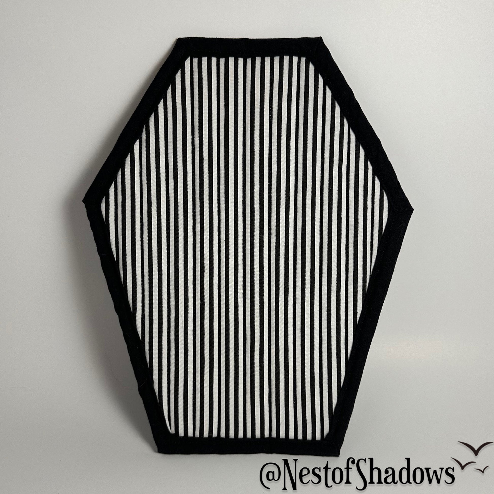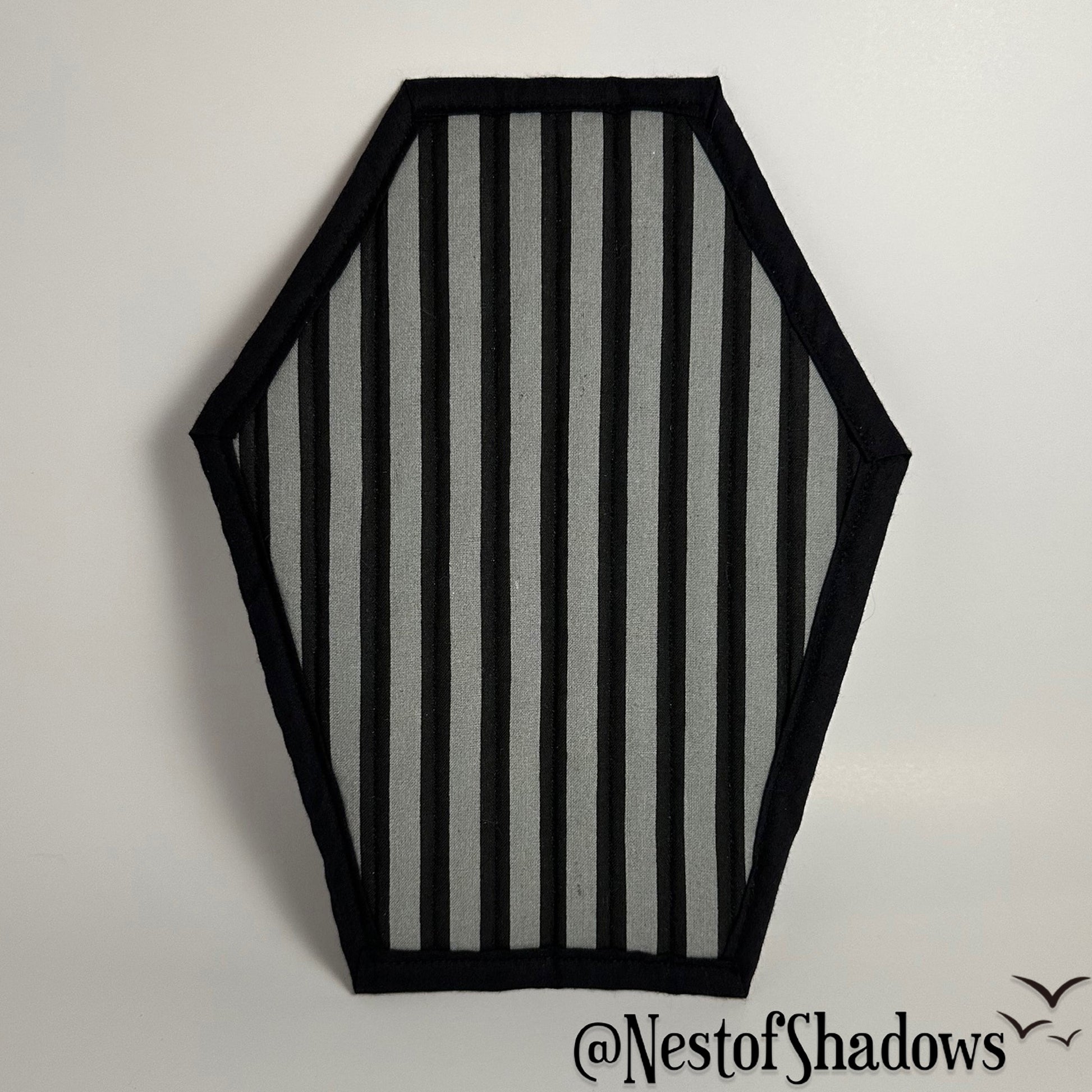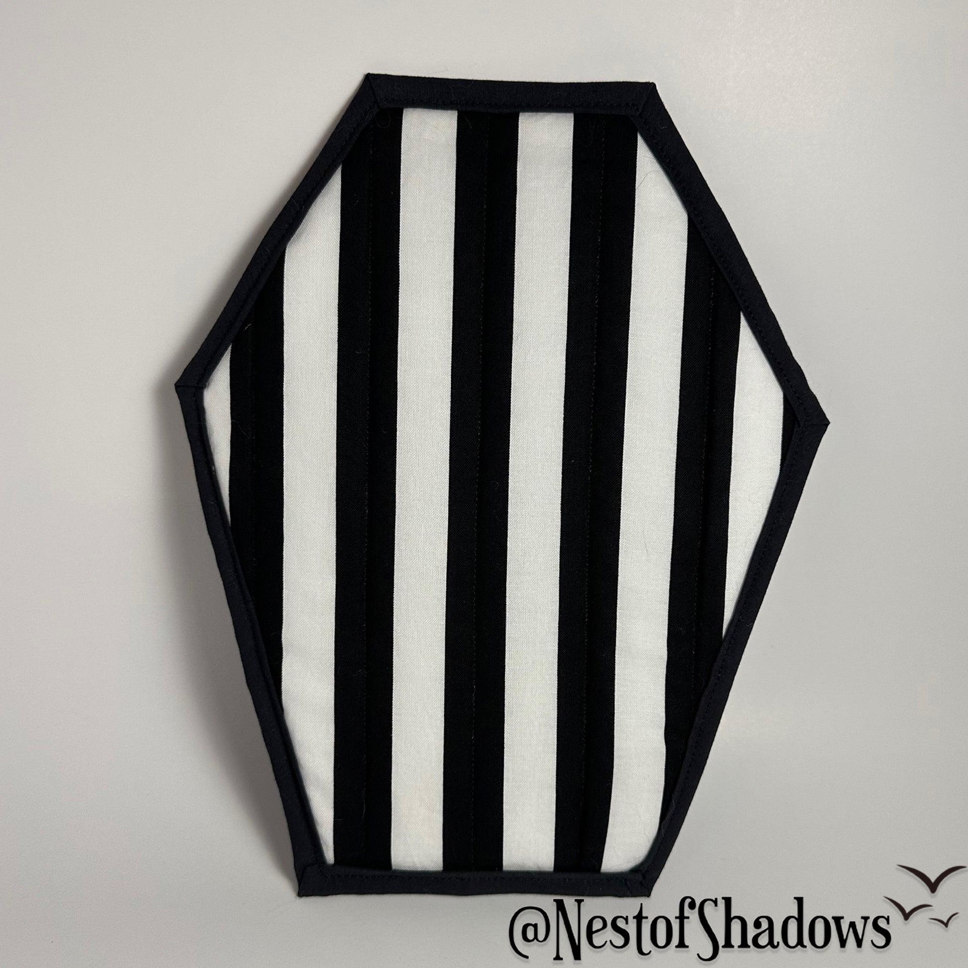 I really wanted a coffin pot holder for myself so I designed one and here we are! Perfect for a Gothic kitchen or just some Halloween time fun. I use them daily and have lots of fun making them.